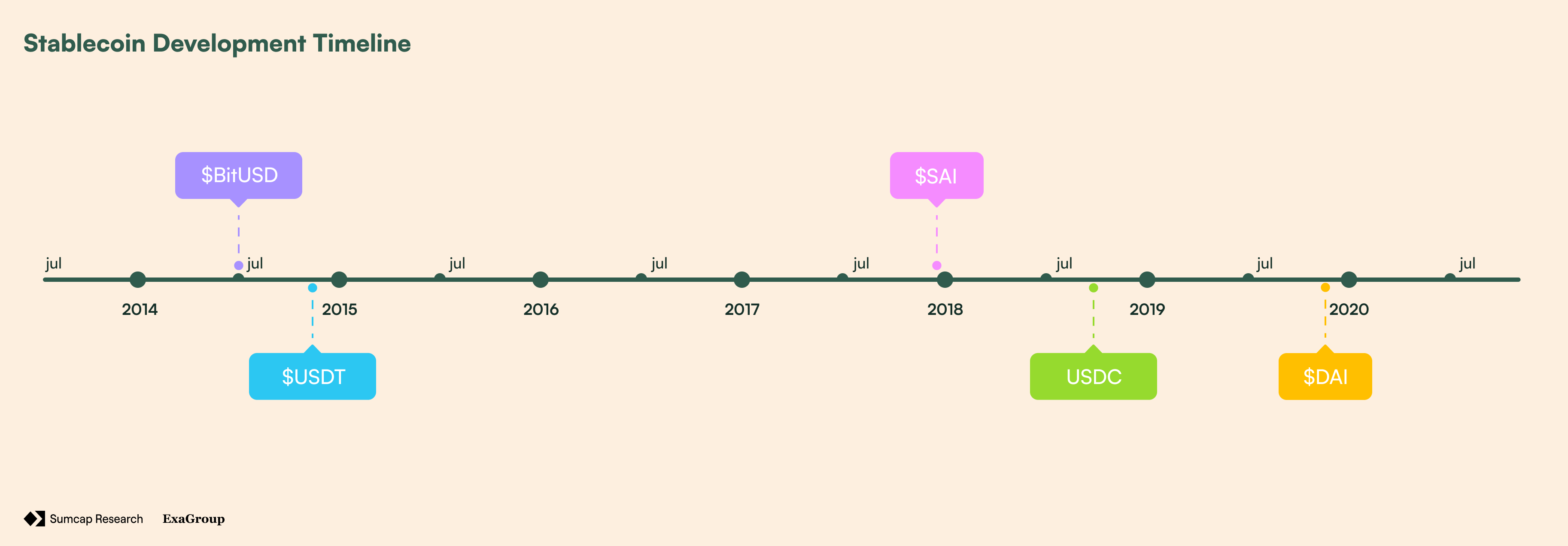 Following USDT’s adoption, teams started searching for new ways to create stability without relying on a centralized issuer. The first major project was SAI (Single-Collateral Dai) by MakerDAO.