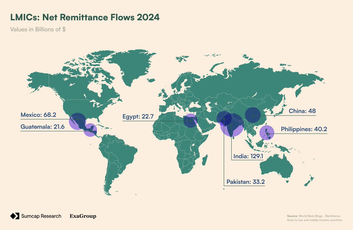 In 2024, remittance flows to LMICs came out to $685B, with the top 5 recipient countries being: