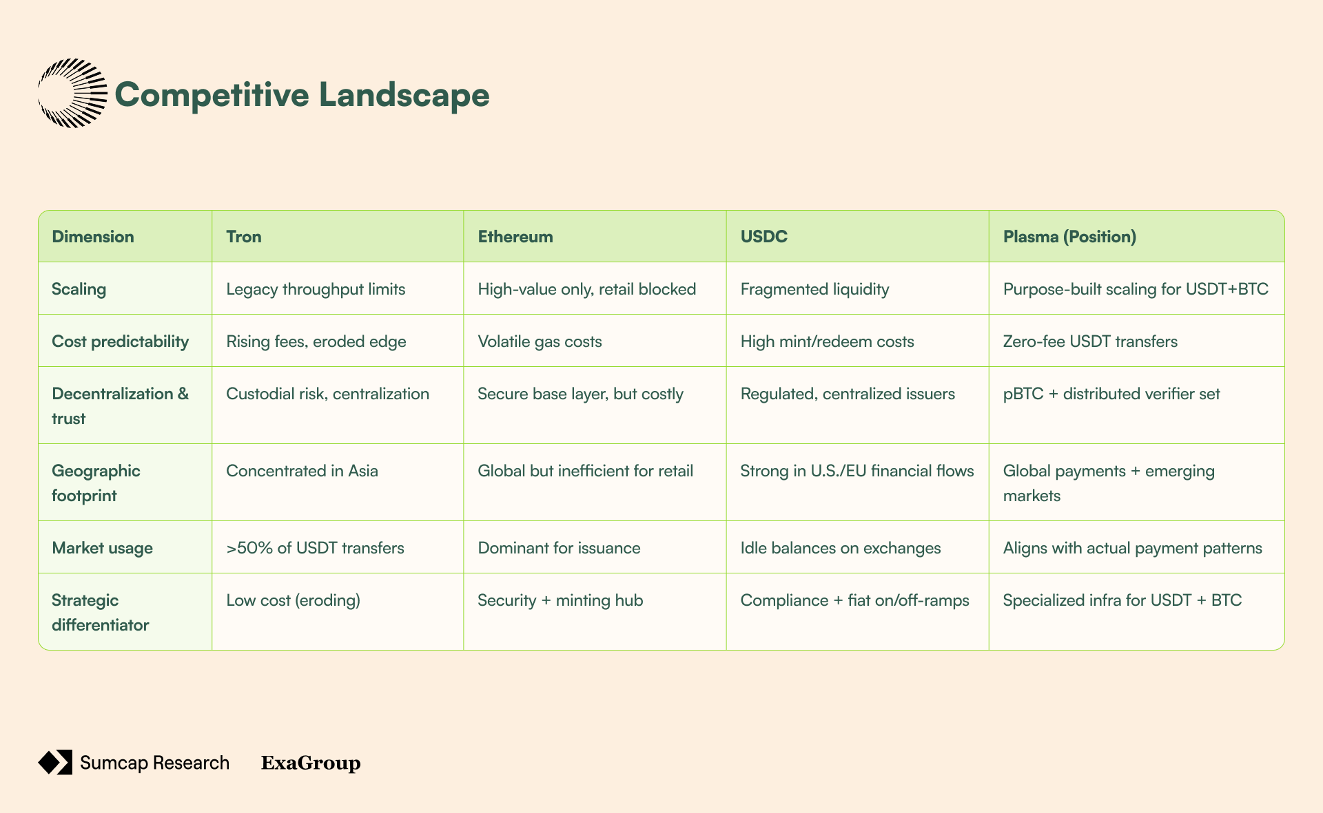 Plasma addresses these inefficiencies by re-architecting the base layer around Bitcoin and stablecoins: